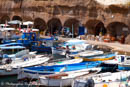 Des habitations cubiques et colorées surplombent le vieux port Romain de l'Ile de Ventone .